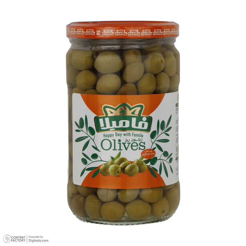 کنسرو زيتون بی هسته معمولی 650 گرمی فاميلا